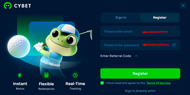 Registering on Cybet is quick and simple. You only need a valid email address to create an account. The platform keeps the process minimal — full KYC verification is requested only when required by regulations or risk checks.